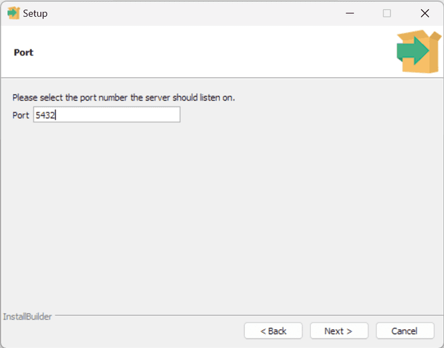Step 7. Specify a port number on which the PostgreSQL database server will listen. The default port of PostgreSQL is 5432. Ensure that no other applications are using this port.