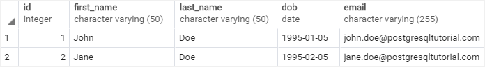 To import this CSV file into the persons table, you use COPY statement as follows: